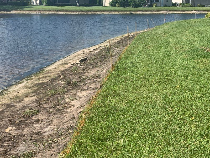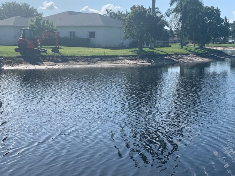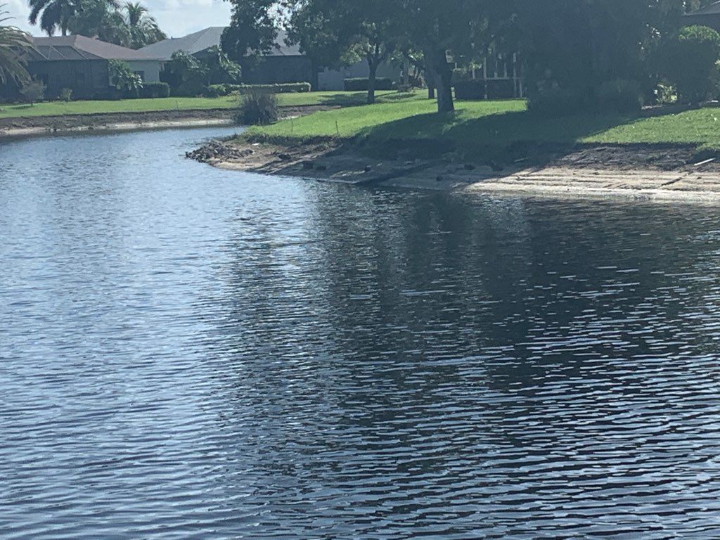 Meadow brook is a beautiful hidden gem of a community in Bonita Springs, Florida, On this project we were hired to put an end to a major erosion problem on over a mile of shoreline. The HOA decided to go with our Hybrid Shell System on this 9.7 acre lake. This project was challenging from the very beginning due to extremely high lake levels. On day one Seabreeze employees set up two 6 inch pumps and began pumping down the south lake at a rate approx 3600 gallons per minute. After several weeks of pumping we began the restoration process of restoring this shoreline. After getting the shoreline grade back into compliance we installed our beautiful Hybrid Shell System. This project turned out amazing and looks beautiful with all the colorful littoral plants.
