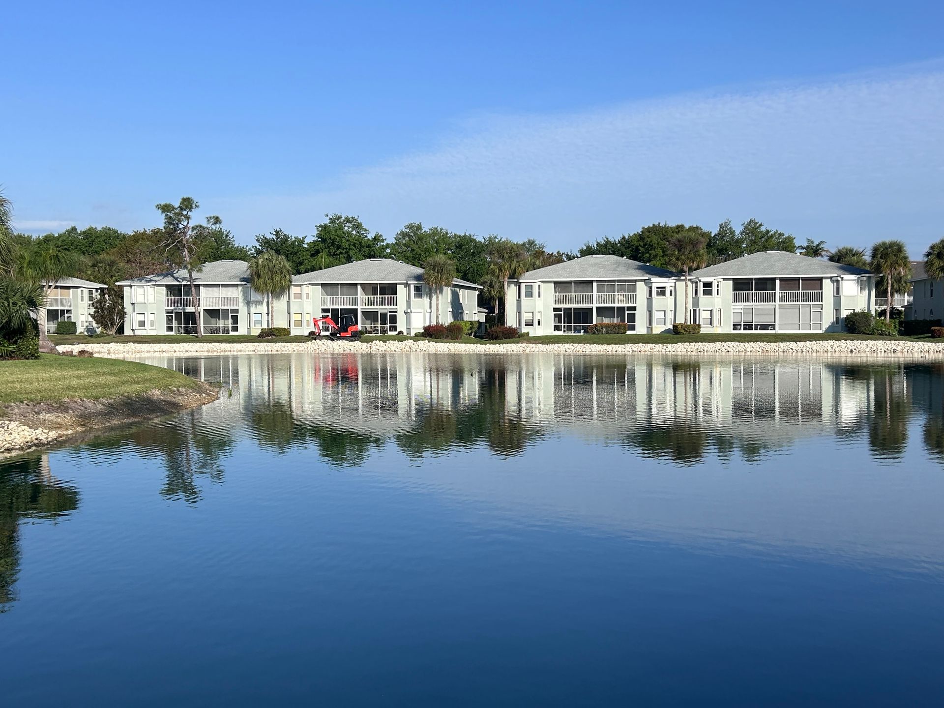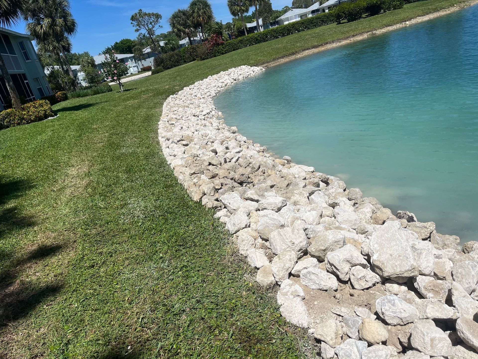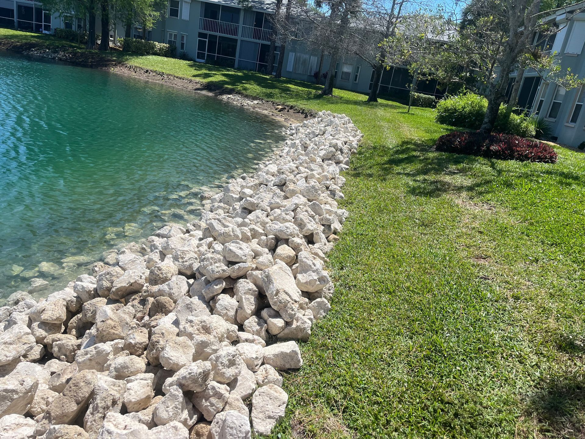 When this community saw our work at neighboring Berkshire Lakes they asked us if we could help them with their lakes too. Our managers visited with the HOA and recommended a combination of our Erosion Defense SystemTM around most of the lake and our Hybrid Shell SystemTM,PatPend in areas where the beautiful littoral plants could be appreciated. We completed the project in just a few weeks and homeowners have been coming out to compliment our superintendent Luke on how great the new shoreline looks! The project was completed in Spring, 2024 and is the last of the three communities within this master development. Another happy customer who now has Stronger ShorelinesTM!