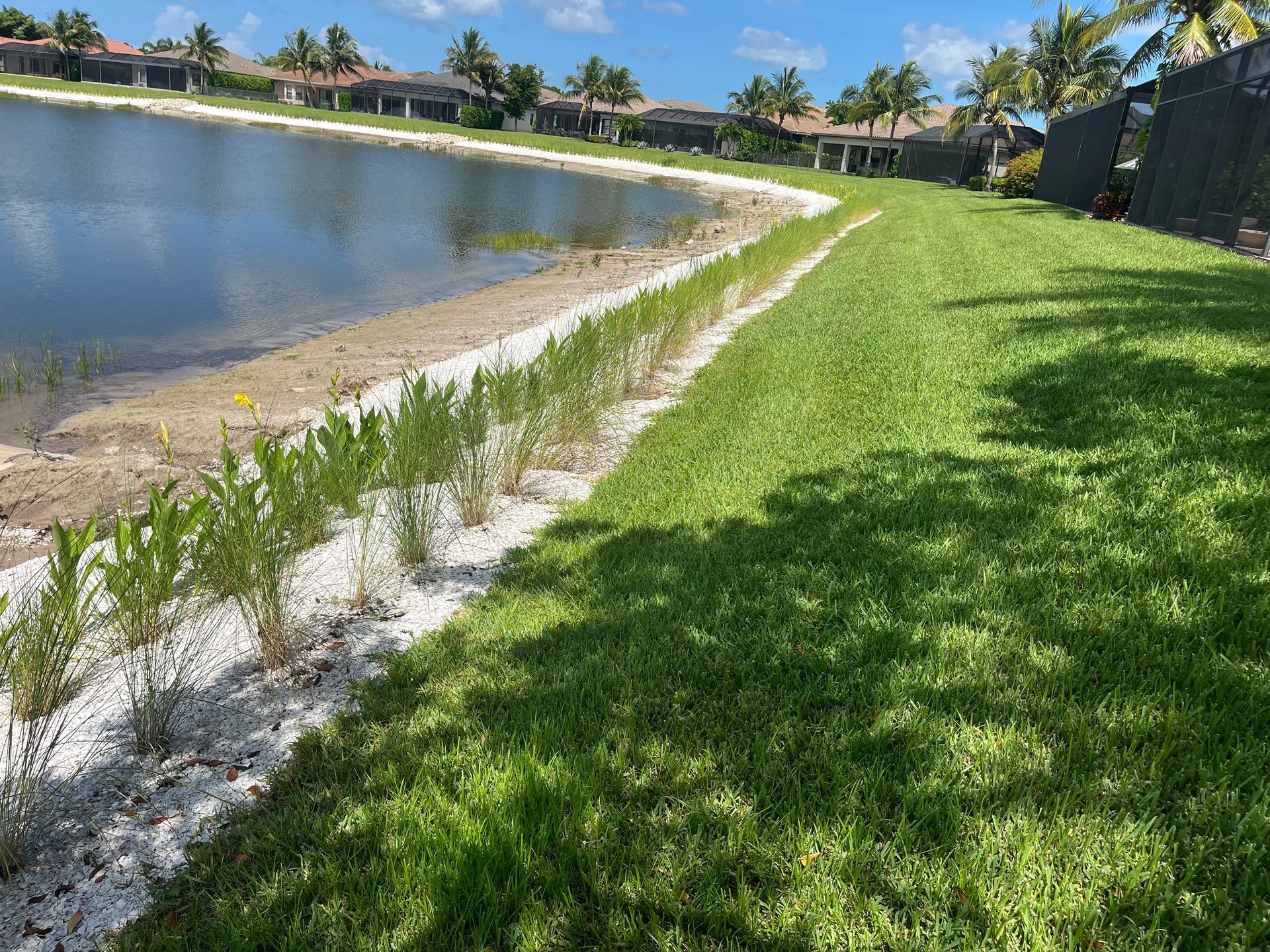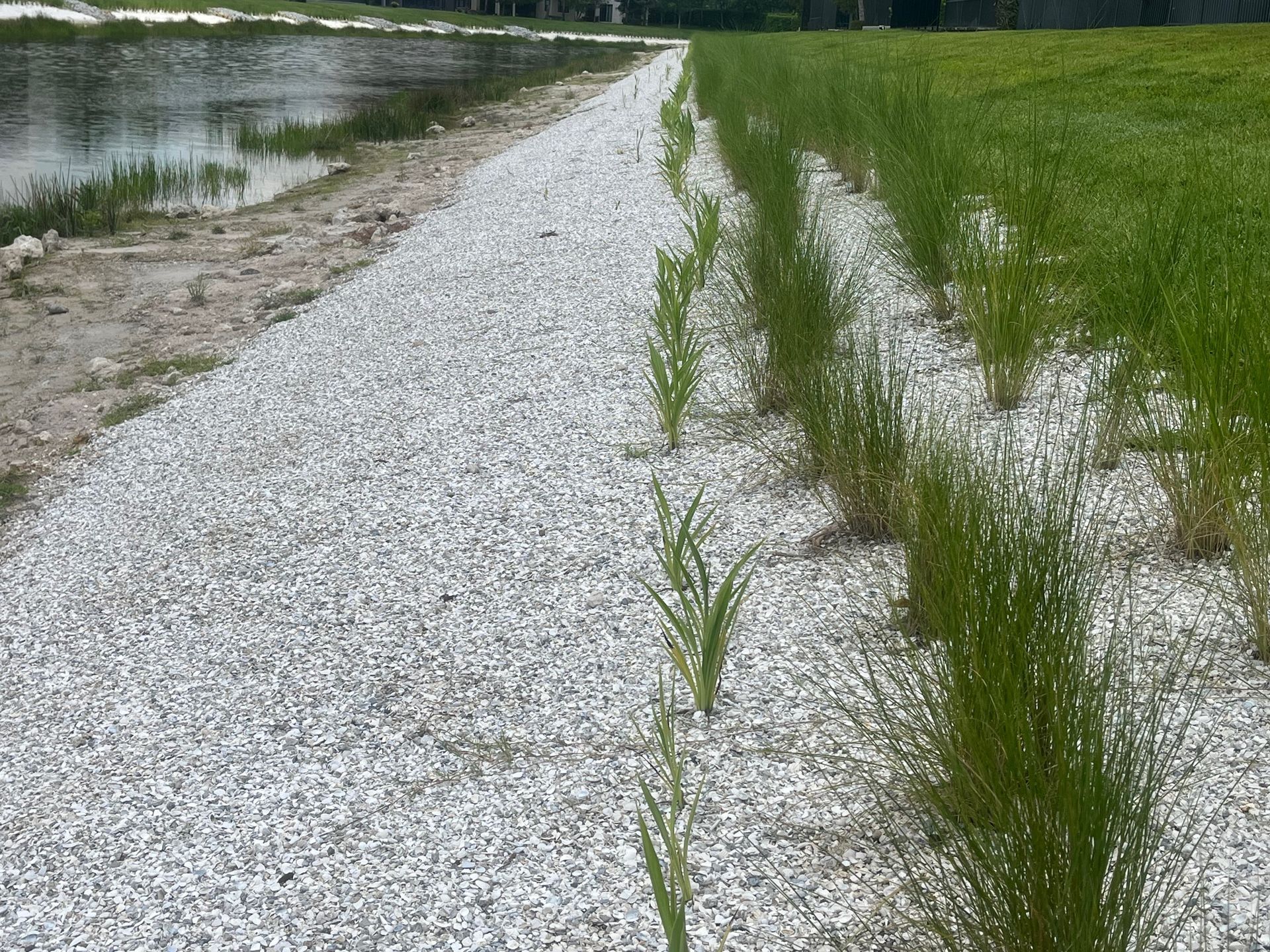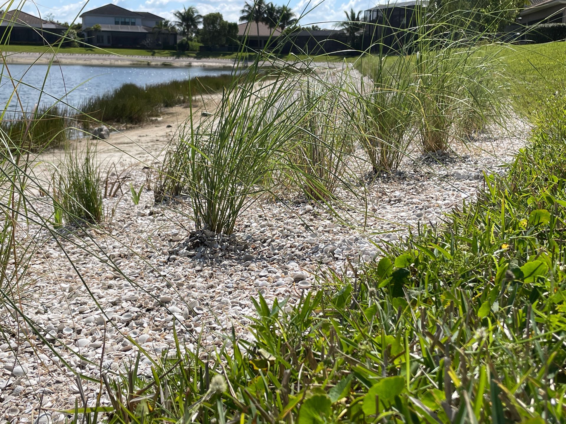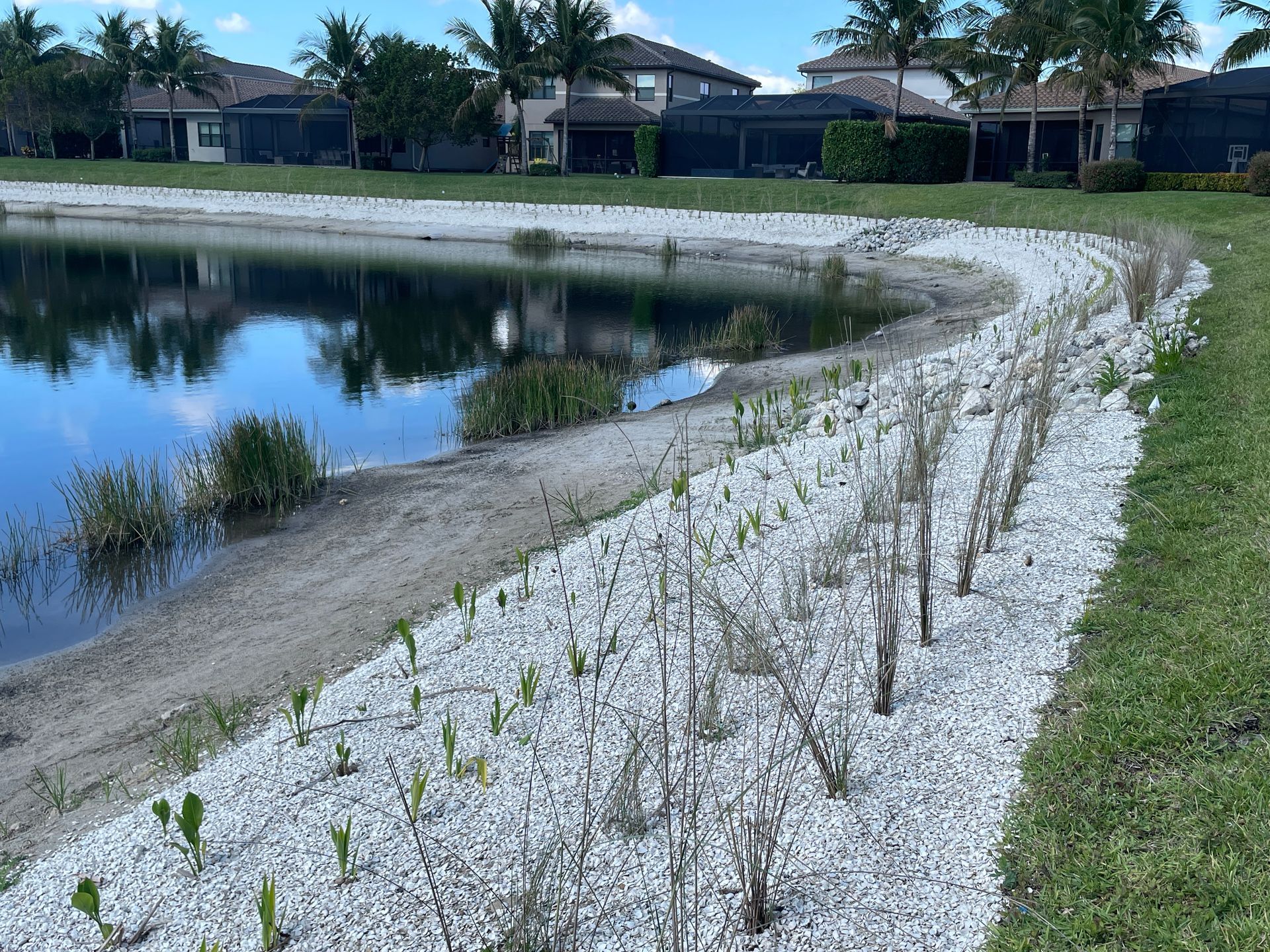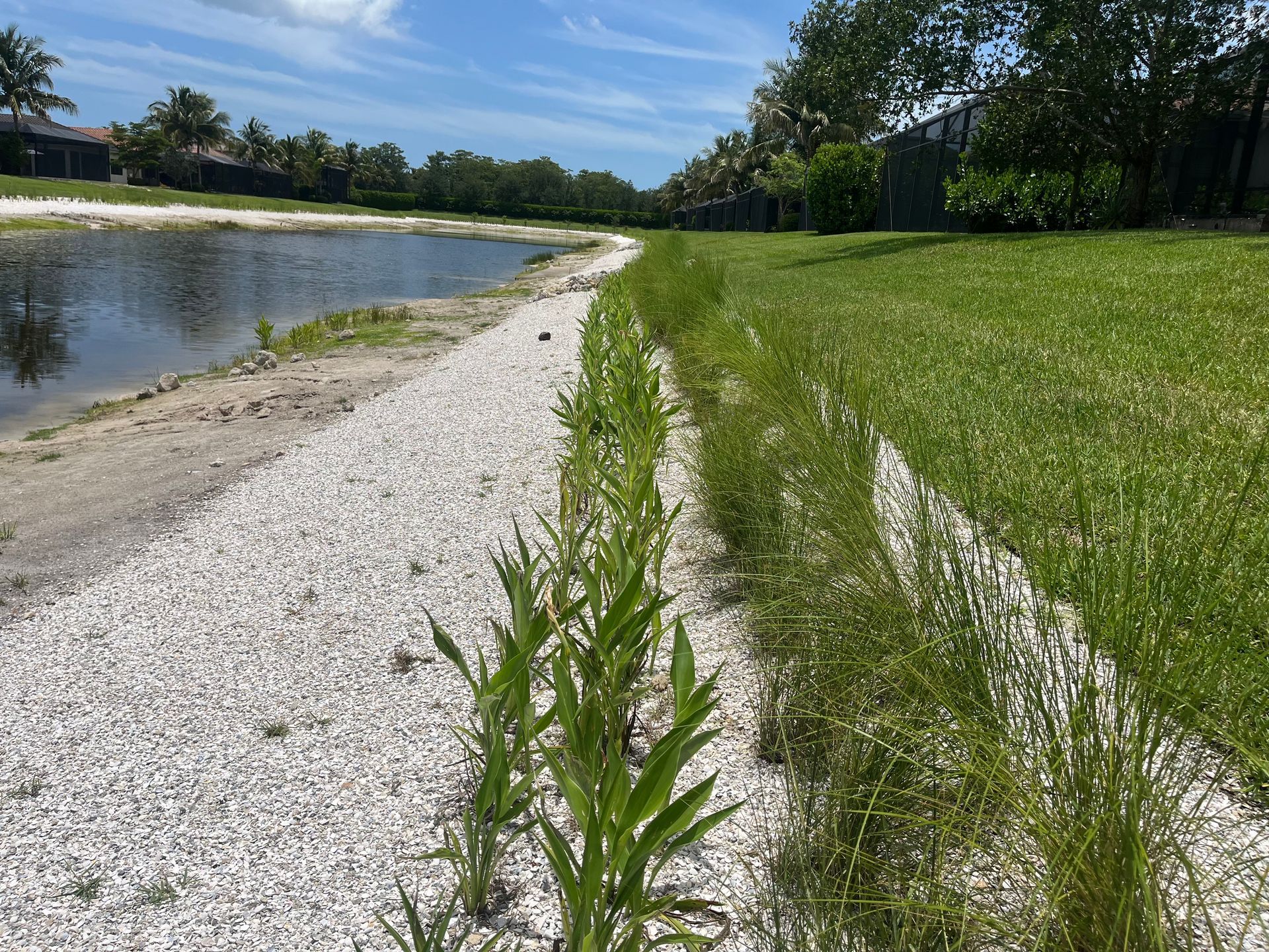 Stonecreek is a much sought-after community tucked away in North Naples next to a large natural preserve. Their Board approached us about their lake shorelines which were severely eroded and unsightly due to negligence by the builder during construction. This area is known for having a high silica content in their soil which is not ideal for our Florida rainy season. They entered into a multi-phase contract with us for our Hybrid Shell SystemTM and had us remediate five lakes to begin. After our shell and beautiful plants were installed, they called for a Town Hall and subsequently approved us to complete ALL of their remaining lakes in 2026! The look of the shell, grasses, and blooming lakeshore plants really added pizzazz to the look of the neighborhoods and we are thrilled to have such a great working relationship with the Board and residents!