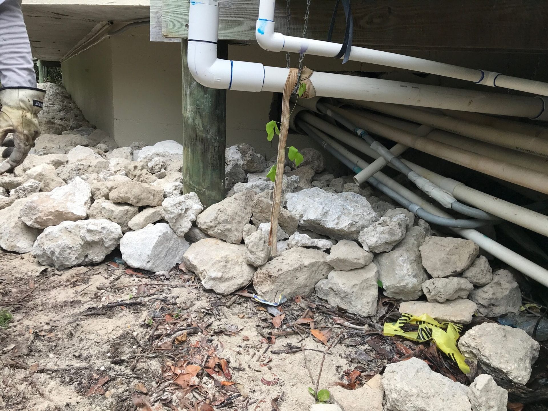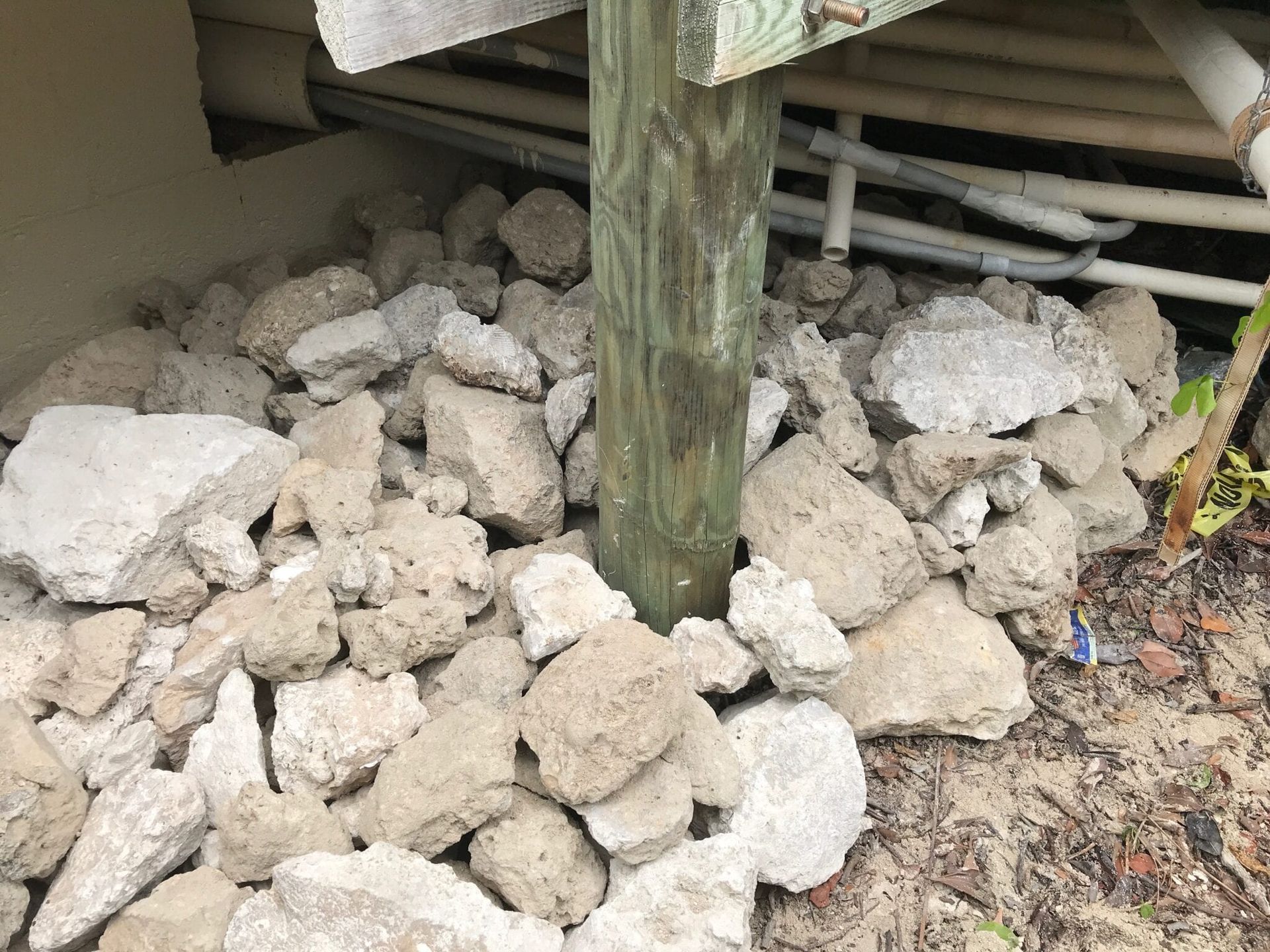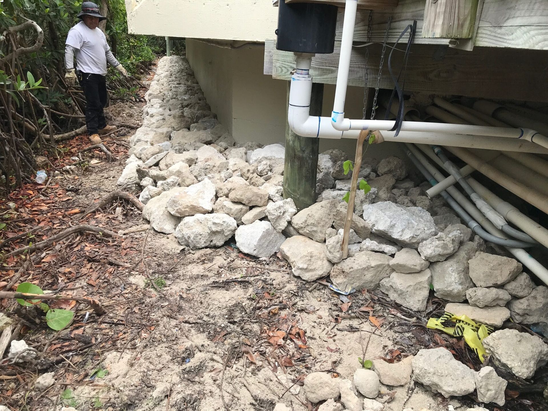This community has a beautiful pool deck that overlooks the bay. They had found that high and low tides were eroding the dirt underneath the foundation so they asked us to come in and install a rip rap revetment to prevent erosion underneath and help prevent settling and cracking of the foundation. The end product came out great and we have been asked to reinforce the foundation along the parking lot in Phase 2.
