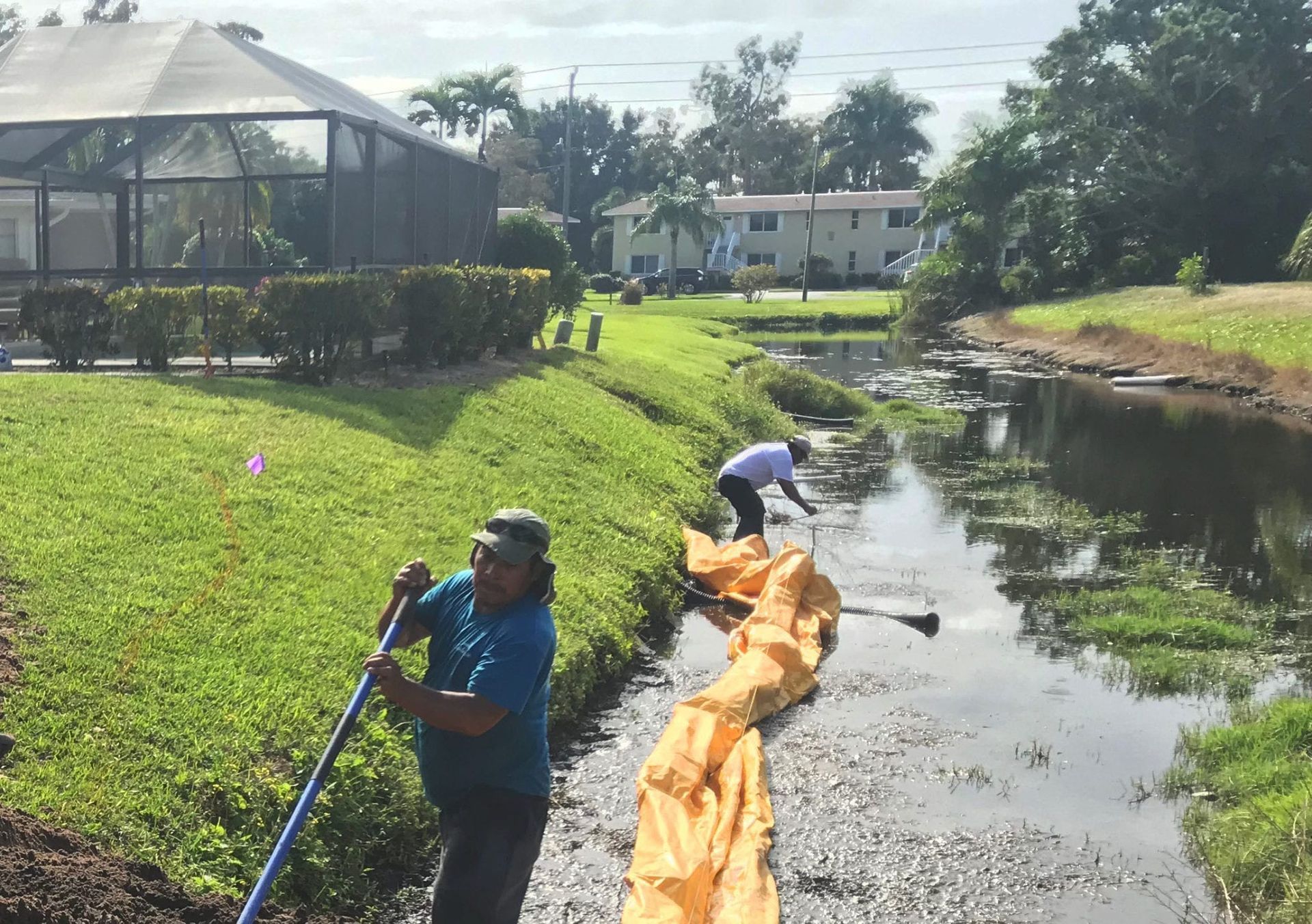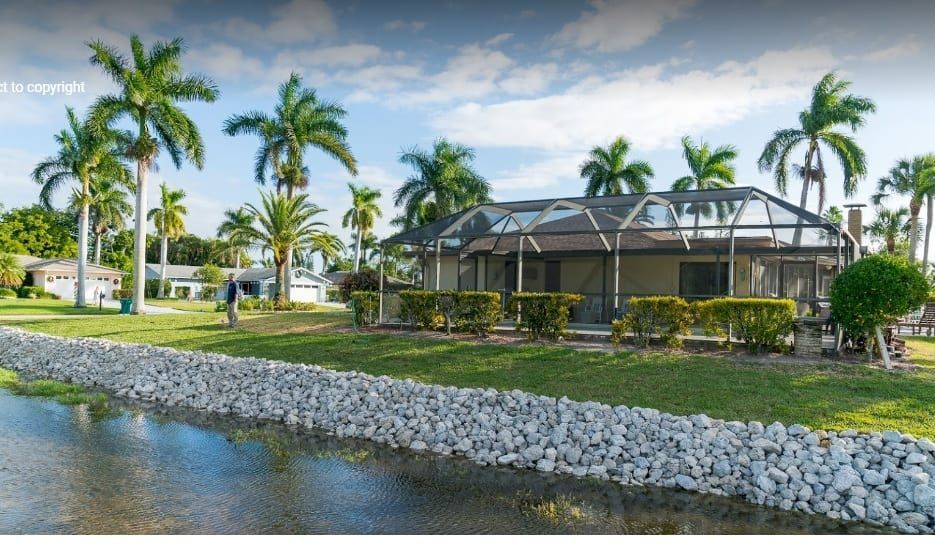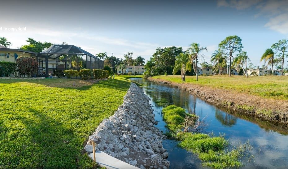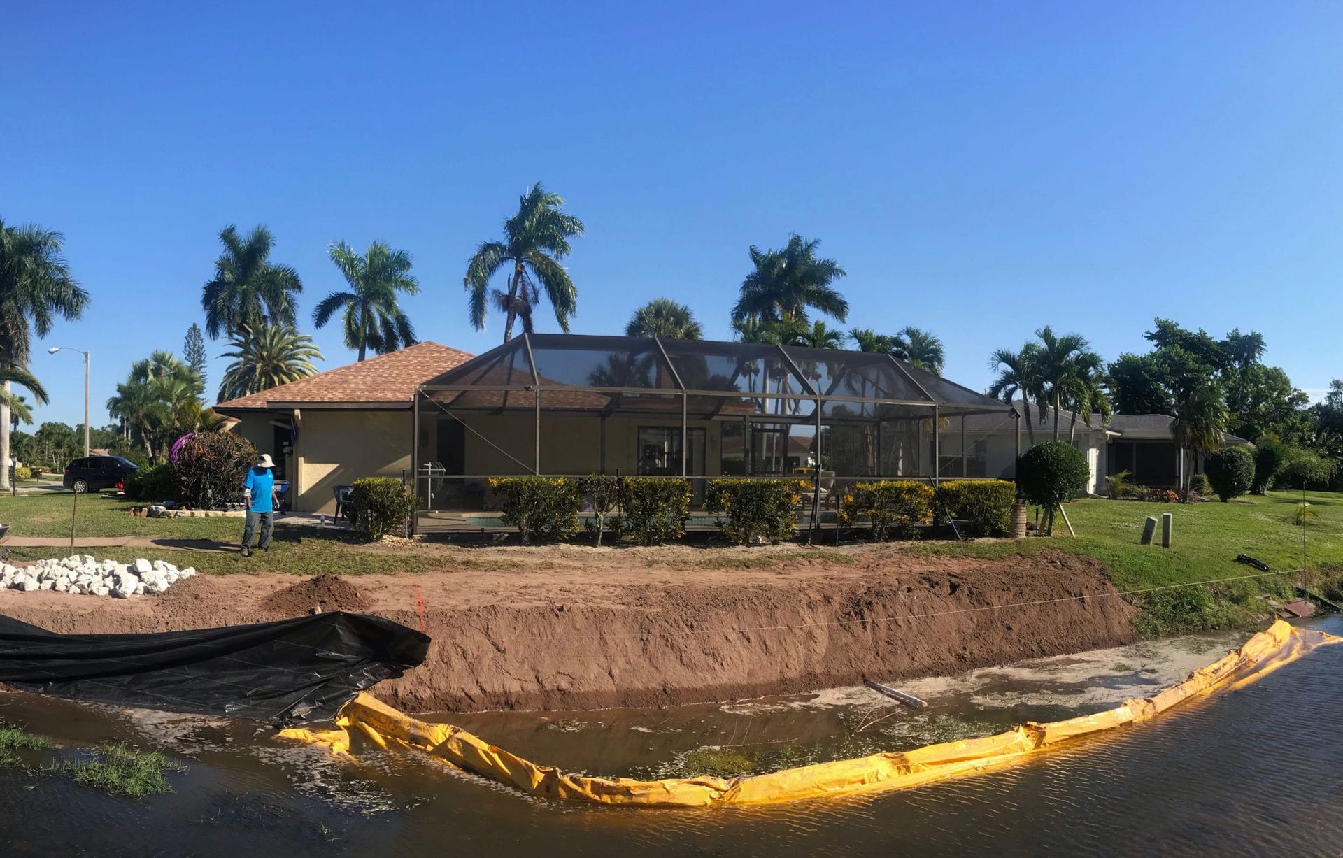 This project was 8 months in the making! The homeowner sought legal counsel in order to acquire the necessary funds to repair his canal. The shoreline had been badly eroded- causing him to lose about 8 feet of yard. We fully restored the shoreline back to original spec when the home was built and then we added a double-reinforced rip rap revetment in order to hold the new land in place. The full project was completed in just three days and required no permitting!