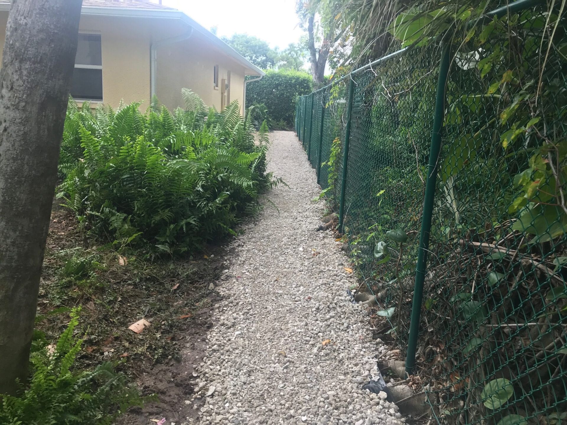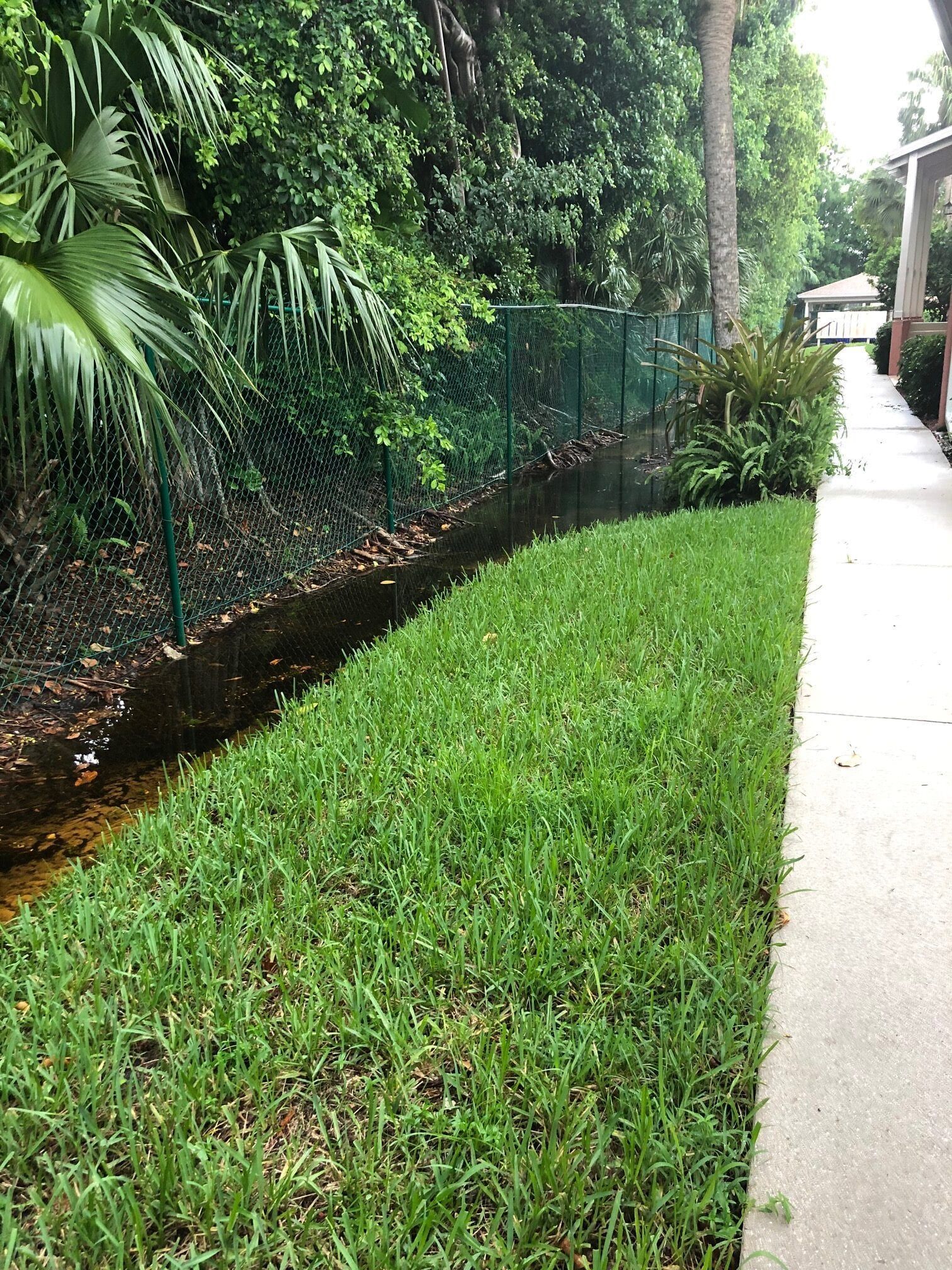 The residents of this quaint condominium complex in Old Naples began to complain that the ditch on the east side of the community filled with water and never drained. We were hired to come up with a solution to the standing water. The system we installed both improved the functionality of the ditch and make it aesthetically pleasing as well. The water now drains properly into a retention pond where it can percolate into the water table underground. They have since asked us to come in and install some additional French drains throughout the community.